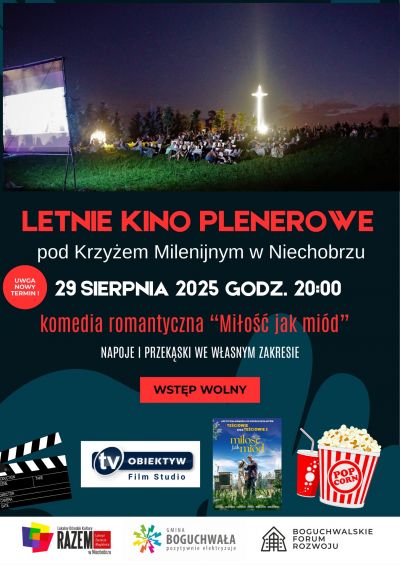 start wydarzenia: 29 / 08 / 2025 | koniec: 29 / 08 / 2025 Uwaga nowy termin Letniego Kina Plenerowego pod Krzyżem Milenijnym w Niechobrzu
