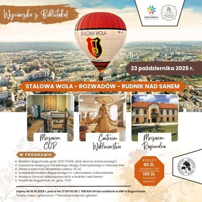 Drodzy Studenci - Seniorzy Uniwersytetu Aktywni Plus w Boguchwale oraz mieszkańcy Gminy Boguchwała...mamy dla Was propozycję – wspólną wycieczkę z Biblioteką, pełną atrakcji i inspirujących spotkań!