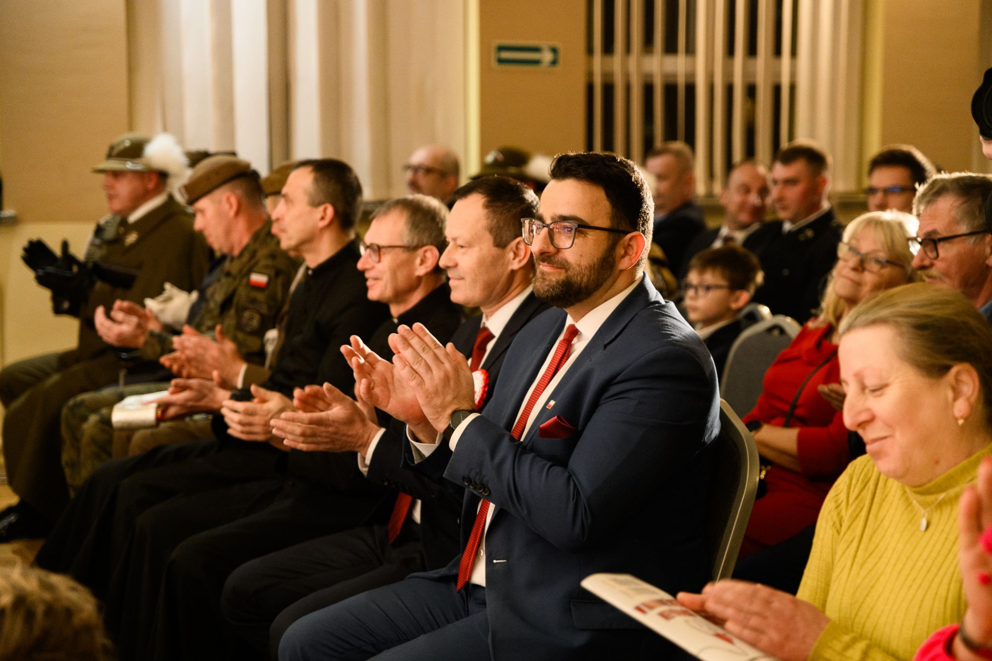 Po tej pięknej i uroczystej chwili głos zabrali zaproszeni goście. Poruszające i pełne refleksji przemowy Pana Burmistrza, Pana Starosty oraz Dyrektora LOK-u wprowadziły zebranych bezpośrednio w podniosły nastrój koncertu, który wypełniły piękne utwory i poezja patriotyczna.