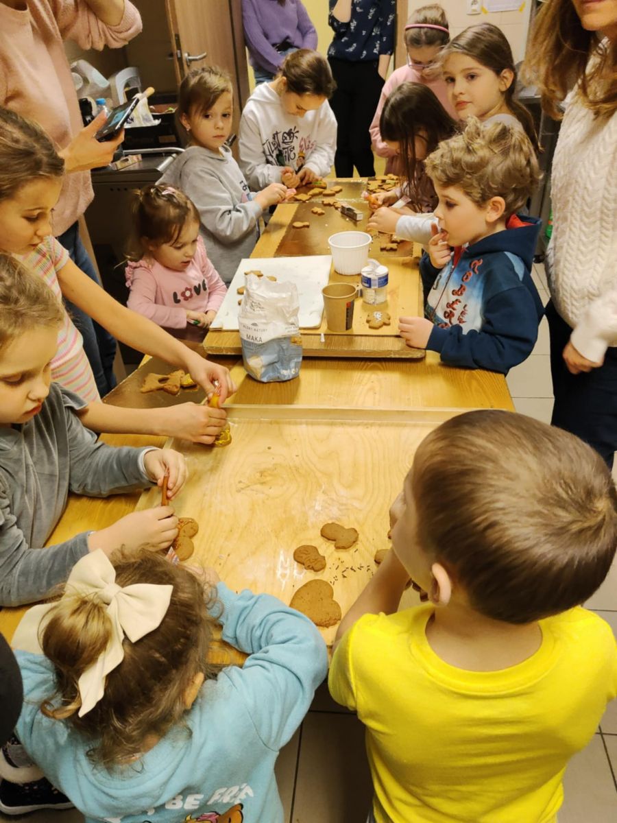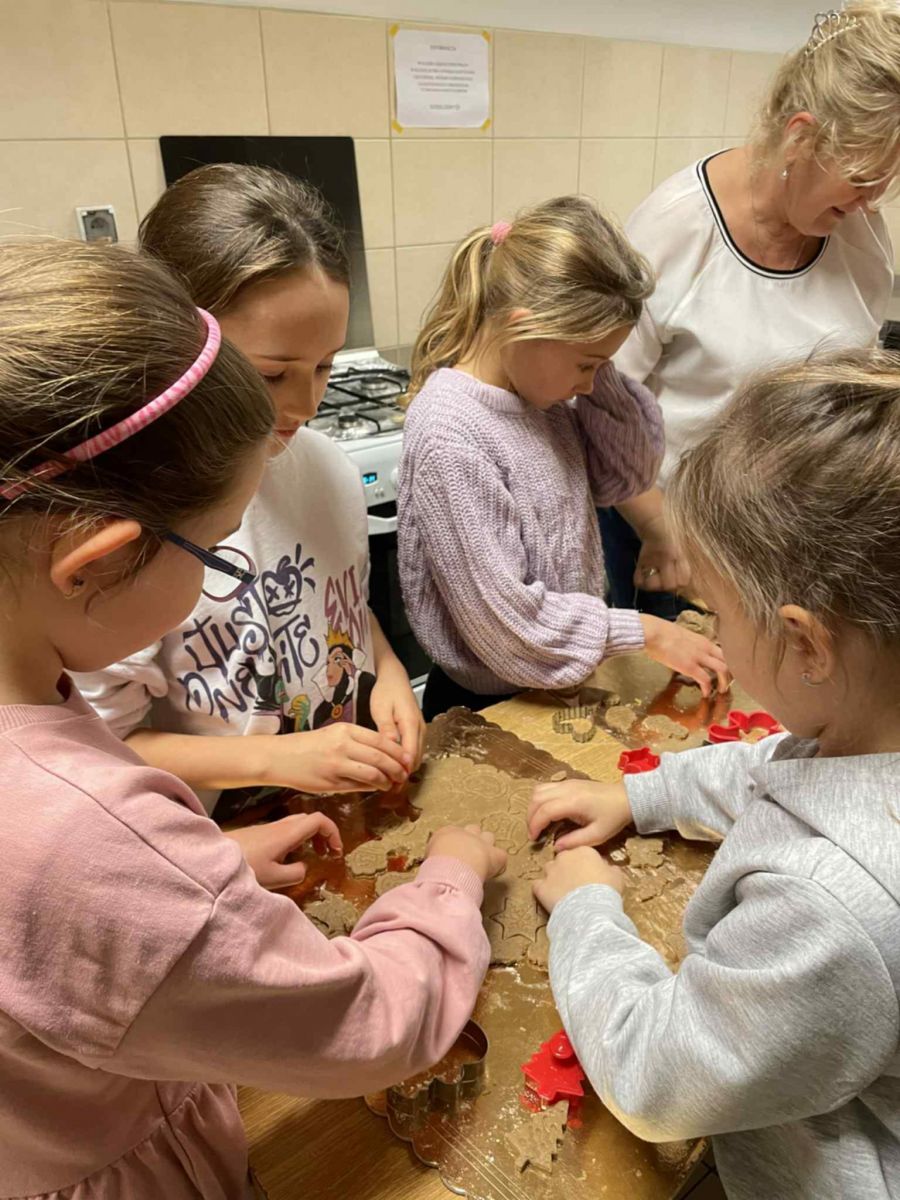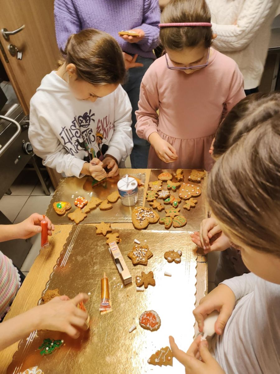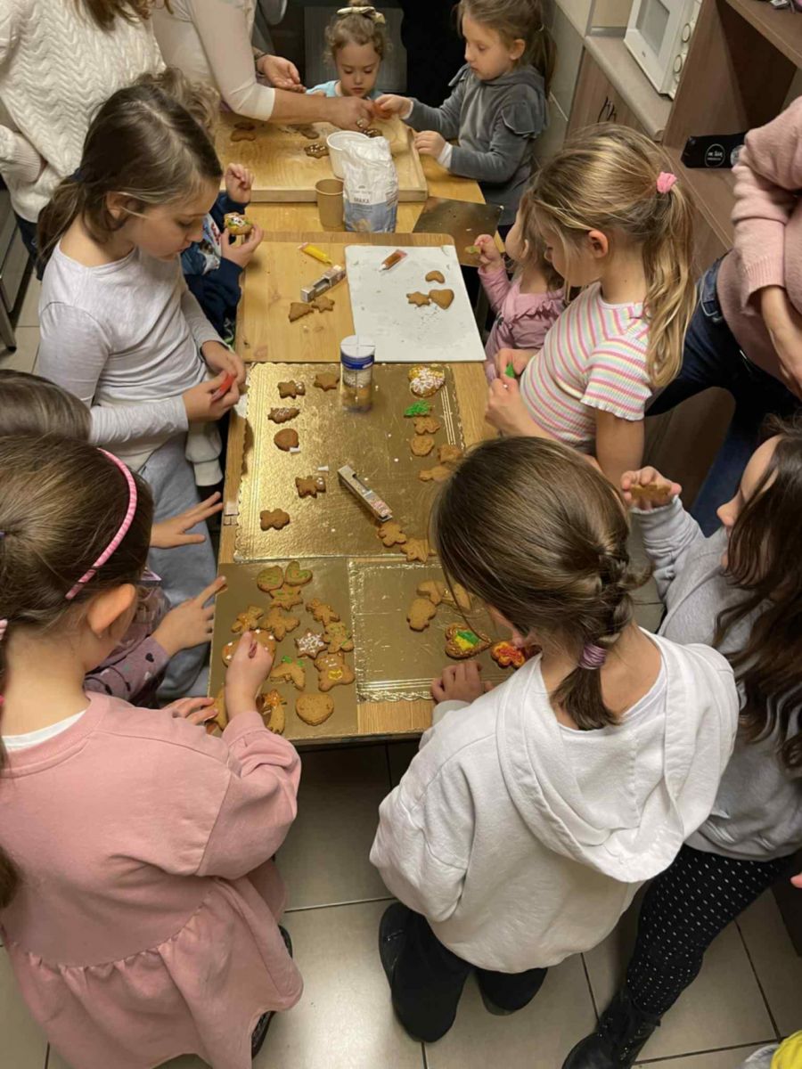 Radości nie było końca, uczestnicy ze skupieniem i dokładnością lepili i wałkowali ciasto, kolejno wycinając z niego najróżniejsze kształty. Po upieczeniu słodkości, pierniczki zostały z wielką finezją ozdobione przez zdolnych kucharzy. Nie będzie to niespodzianką, że to kosztowanie wypieków, na które z niecierpliwością czekały podczas całych warsztatów - przyniosło dzieciakom najwięcej frajdy. Z satysfakcją i uśmiechem na twarzach, uczestnicy powrócili do swoich domów z własnoręcznie wykonanymi wypiekami w dłoniach.