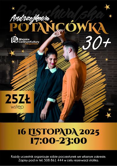 Miejskie Centrum Kultury w Boguchwale zaprasza na Boguchwalską Potańcówkę 30+ w dniu 19 października 2025 r. w sali widowiskowej